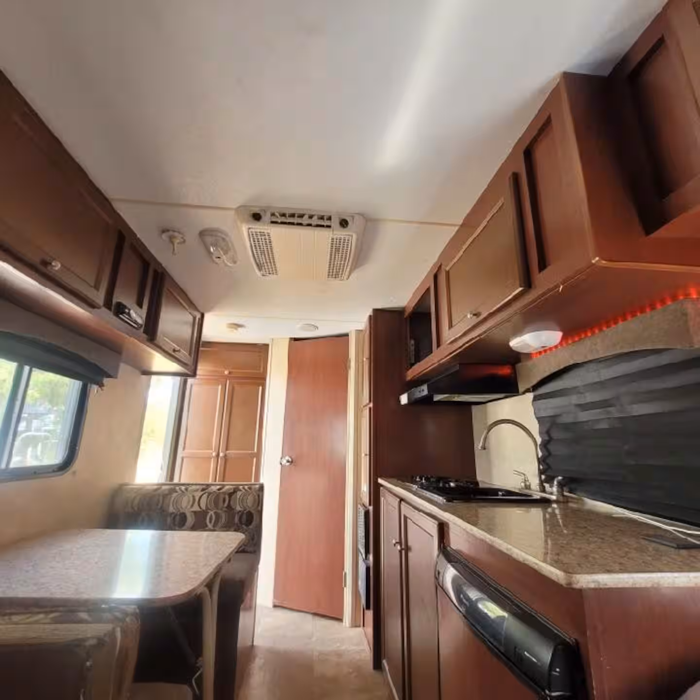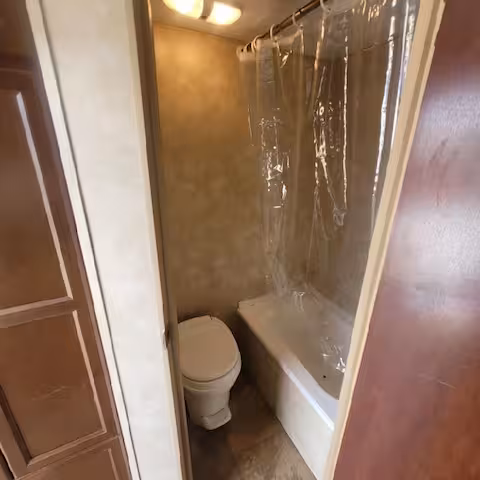 Thanks for considering our Fun-size camper! This camper is clean and shiny—a cozy one-bedroom RV with a full-size bed. It features one bathroom and a dinette that converts into a bed for a child. We keep it stocked with all the essentials: linens, towels, paper products, and basic cooking supplies.