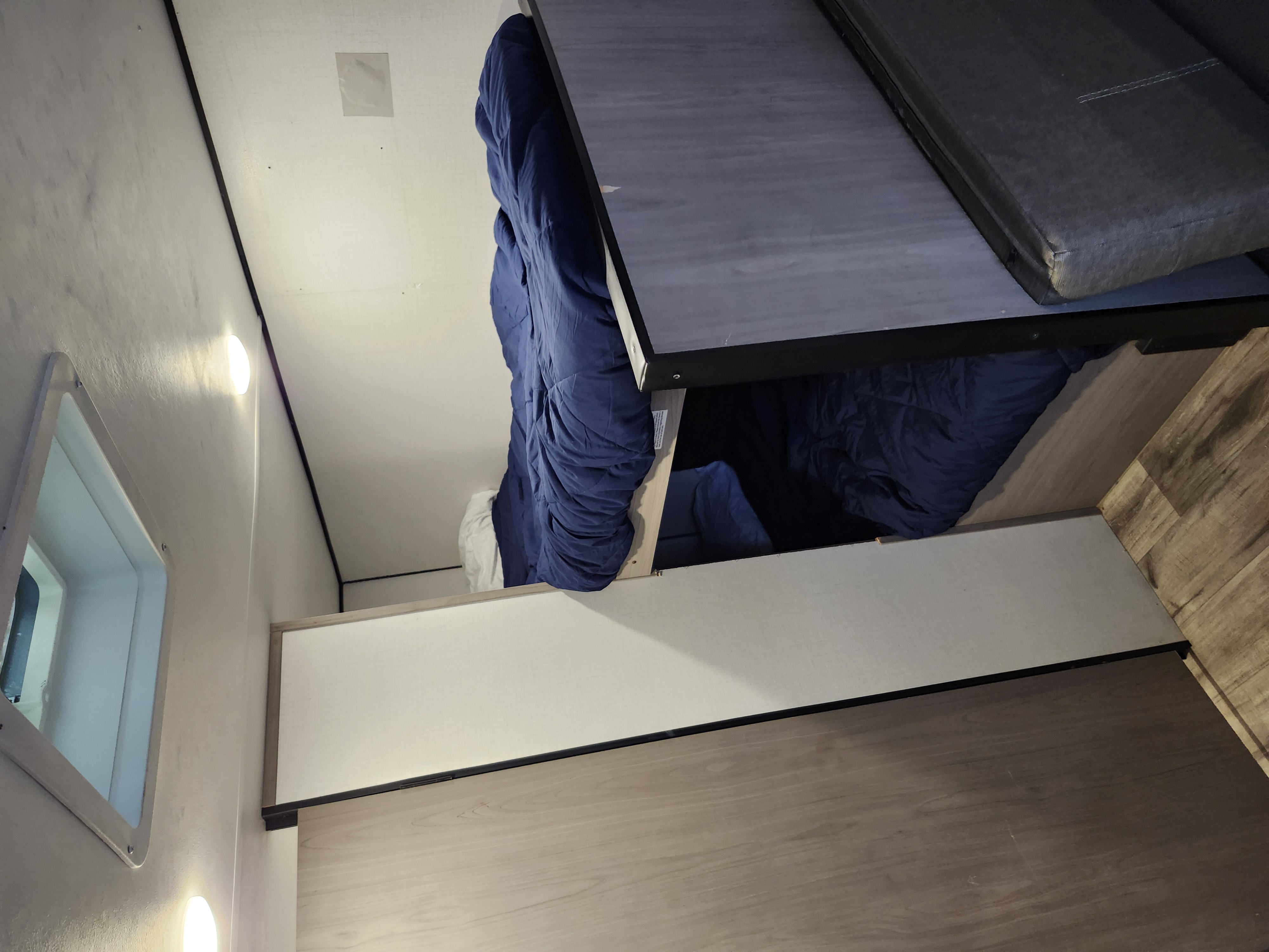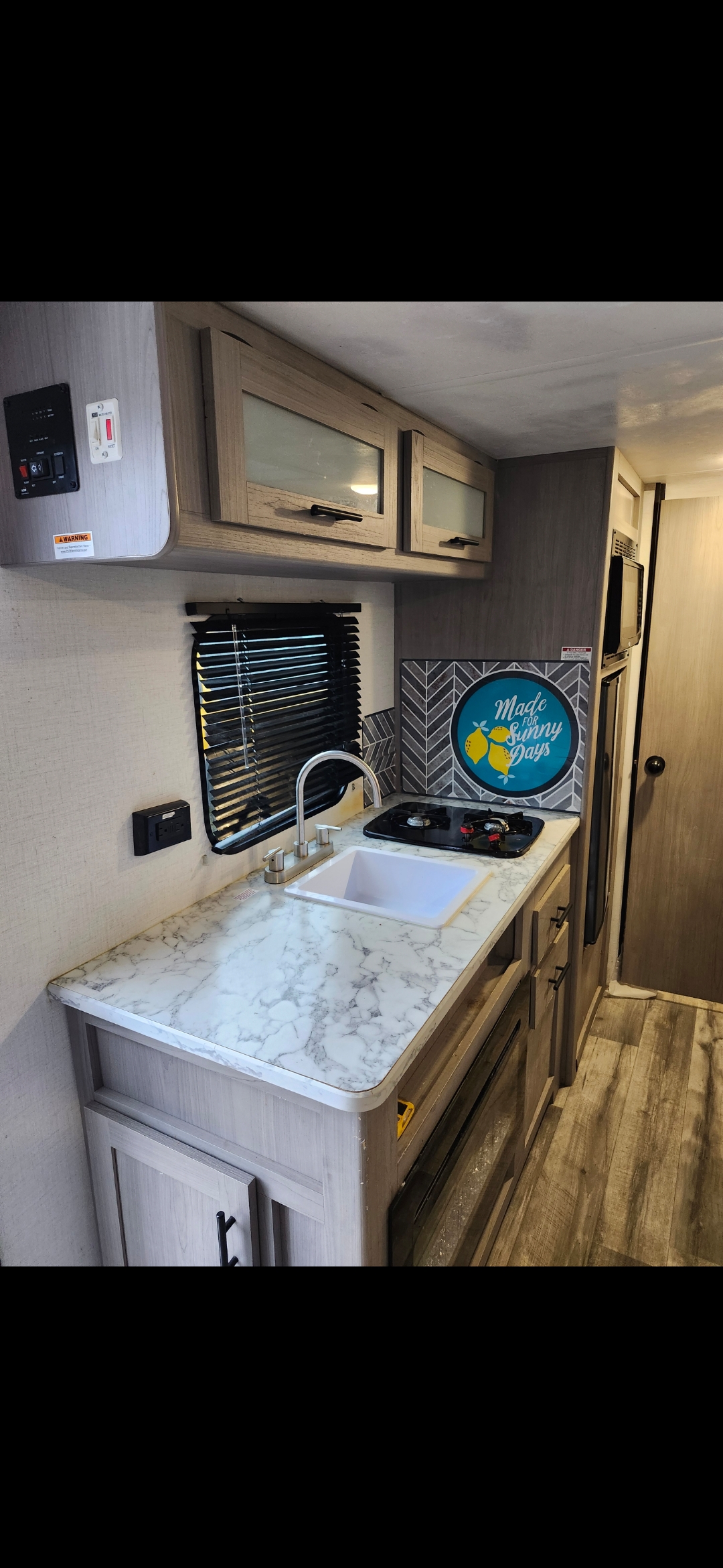 Thanks for considering our RV! This camper is CLEAN AND SHINY! It’s a cozy one-bedroom RV with a full-size bed and twin-size bunk beds. It features one bathroom and a dinette that converts into a bed for a small child. We’ve stocked it with all the essentials: linens, towels, paper products, and basic cooking supplies.